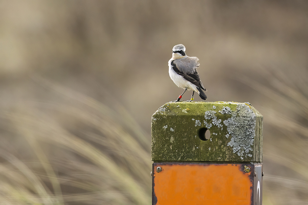 We hebben al eerder melding gemaakt van voorjaarsverschijnselen; vogels die zingend een territorium opeisen, vogels welke het nest kraken van een andere vogel en daarin hun eieren uitbroeden en vogels welke terugkeren uit hun winterverblijf. Eén van de soorten waar reikhalzend naar wordt uitgekeken is de tapuit. Eind maart, begin april worden deze terugverwacht dus nu zwervend door de duinen ben je extra alert op deze soort. En ja hoor, de afgelopen weken werden de eersten gemeld. De tapuit heeft de Noordduinen bij Den Helder verkozen tot een van de voorkeursgebieden in Nederland. Zoals de meesten van ons wel zullen weten gaat het niet goed met deze soort, al langere tijd. Reden voor Landschap-Noord-Holland, in de persoon van boswachter Tim Zutt, deze prachtige vogel te omarmen en alles in het werk te stellen de broedomstandigheden zo gunstig mogelijk te maken. Dit in de vorm van gaas voor konijnenholen, waar ze in broeden, te leggen. Dit om de vos en andere roofdieren buiten het hol te houden. En omdat er weinig konijnen zijn en dus minder holen de tapuit hier ook mee te helpen, dit door met een grondboor een kunstmatig hol te creëren. Verder is het ook belangrijk om duin met kaal zand voorhanden te hebben omdat hierop zich de insecten bevinden waar de tapuit van houdt. Ook hieraan wordt gewerkt; op de geschikte momenten worden de duinen door schapen begraasd en er wordt ook actief kaal duin gemaakt.