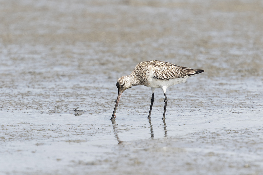 Een foeragerende rosse grutto.