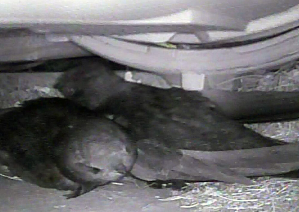 Gierzwaluwen in de nestkast geregistreerd met de camera.