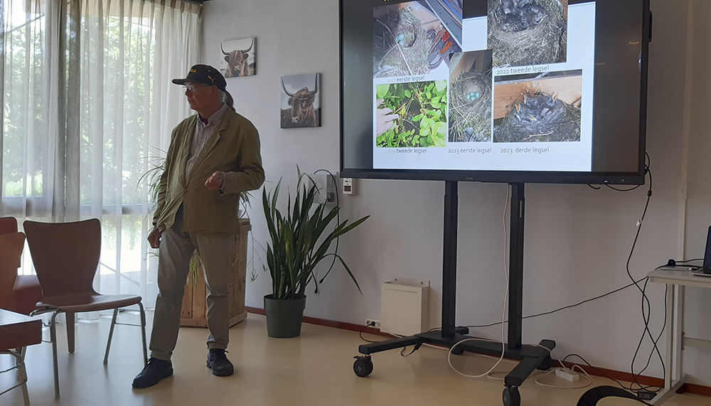 Uit het verhaal van Henk bleek dat hij diverse soorten te gast heeft en heeft gehad in de loop van de jaren. Ook blijkt Henk al jaren de vogels in zijn tuin in de gaten te houden. Zo liet hij de aanwezigen zwart-wit plaatjes zien van merels in zijn tuin. Deze foto’s bleken 40 jaar geleden gemaakt.